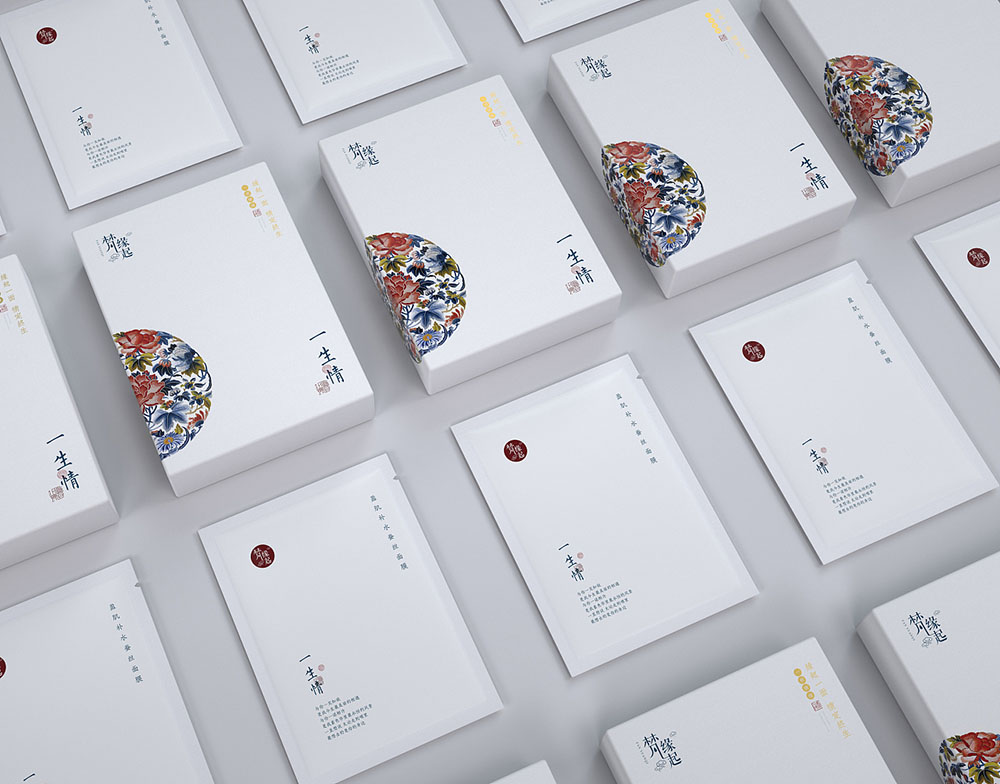 古柏一般在做化妝品包裝設(shè)計(jì)的時(shí)候,前期拿到項(xiàng)目,首先做的是產(chǎn)品企業(yè)定位,了解產(chǎn)品,賦予產(chǎn)品理念,這樣才能更好的用設(shè)計(jì)去詮釋產(chǎn)品的市場(chǎng)性。這款項(xiàng)目面膜是一款中高檔面膜產(chǎn)品,同時(shí)作為眾多場(chǎng)合的伴手禮,傳遞出生一段緣,守一生情的美好寓意。面膜的所有包裝均以中國傳統(tǒng)文化為元素,代表著不忘本心的美好祈愿,體現(xiàn)出豐厚的文化底蘊(yùn),散發(fā)其獨(dú)特的文化魅力,以一種潤物細(xì)無聲的方式潛移默化的傳遞著中國傳統(tǒng)文化。