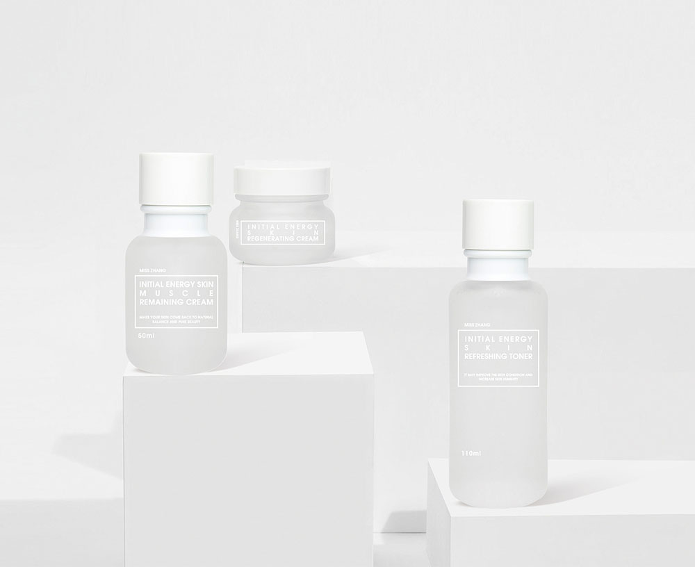 本套設(shè)計(jì)主要依據(jù)客戶(hù)對(duì)品牌單品時(shí)尚、個(gè)性、醫(yī)美的定位,做出了此次的護(hù)膚品系列設(shè)計(jì)。目前接觸護(hù)膚品客戶(hù)較多,對(duì)大大小小的醫(yī)美品牌看個(gè)遍,總體來(lái)看,單純漂亮和護(hù)膚理念已無(wú)法滿(mǎn)足現(xiàn)代愛(ài)美女性,“概念護(hù)膚 ” 是更多現(xiàn)代知性女性消費(fèi)者的生活理念。結(jié)合產(chǎn)品醫(yī)美個(gè)性的定位,本套設(shè)計(jì)重心關(guān)鍵詞為:極致的純凈!【pure white 】,將本套系水乳霜的設(shè)計(jì)理念傳達(dá)給客戶(hù)和消費(fèi)者。